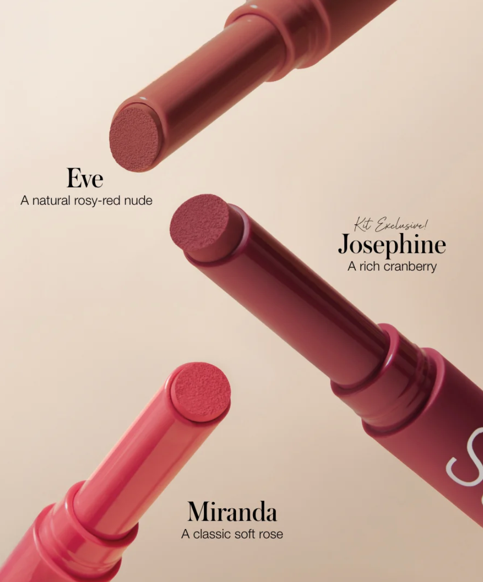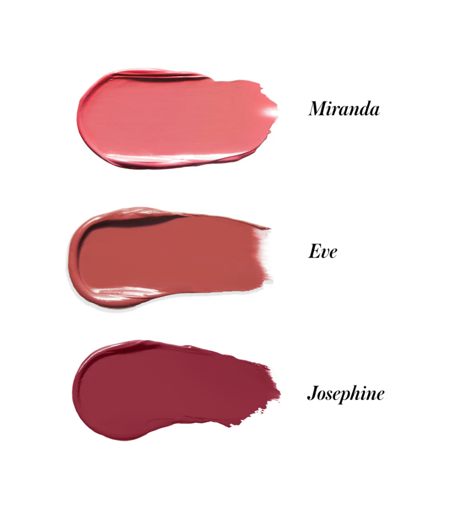 Miranda: *Prunus Cerasus (Bitter Cherry) Fruit Water, Jojoba Esters, Helianthus Annuus (Sunflower) Seed Wax, Water/Aqua/Eau, *Alcohol Denat., Squalane (vegetable), Glycerin, Helianthus Annuus (Sunflower) Seed Oil Unsaponifiables, Silica, Polyglyceryl-4 Caprate, Polyglyceryl-3 Polyricinoleate, Isononyl Isononanoate, Acacia Decurrens (Mimosa) Flower Wax, Polyglycerin-3, Potassium Sorbate, Tocopheryl Acetate, *Vanilla Planifolia Fruit Extract, Polyglyceryl-3 Diisostearate, *Simmondsia Chinensis (Jojoba) Seed Oil, Tocopherol (non-GMO), *Calendula Officinalis (Marigold) Flower, *Equisetum Arvense (Horsetail) Leaf Extract, *Hypericum Perforatum (St. John’s Wort) Flower Extract, *Curcuma Longa (Turmeric) Root, *Hemidesmus Indicus (Country Sarsaparilla) Root Extract, *Withania Somnifera (Ashwagandha) Root Extract, Terminalia Ferdinandiana (Kakadu Plum) Fruit Extract, *Glycyrrhiza Glabra (Licorice) Root Extract, *Olea Europaea (Olive) Leaf Extract, Titanium Dioxide (CI 77891), Iron Oxides (CI 77491, CI 77499), Red 7 (CI 15850).